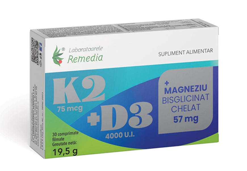 K2+d3+magneziu bisglicinat chelat 30cpr filmate - Remedia