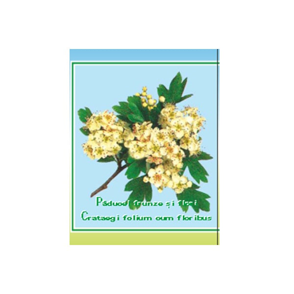 Paducel Frunze si Flori gramePrincipii active: acid crategolic, neotegolic, acantolic.Actiune: adjuvant in unele afectiuni cardiovasculare pe fond nervos (hipo- si hipertensiune arteriala, tahicardie), obezitate, tulburari de pubertate sau menopauza.Contine 50 grame. Infuzie dintr-o lingurita de planta la o cana cu apa clocotita timp de 15 minute, dupa care se strecoara, se indulceste si se bea in 2 - 3 reprize pe zi.